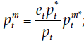 (2)Where At is an exogenous technology shock and 𝛼 is the share of capital output. The entrepreneurs choose kt − 1 and nt to maximize profits subject to the production technology. The resulting real marginal cost includes real rental rate of capital, nominal wage, prices of home goods, and prices of foreign goods in local currency (the price of foreign goods equals the external price of foreign goods times the real exchange rate):