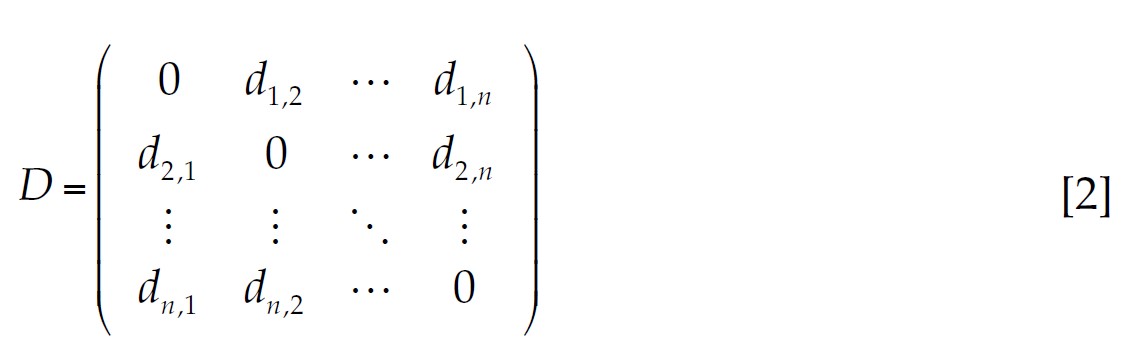 If there are n banks, the pairwise dissimilarity between them is presented as a n × n square matrix, which is commonly known as an interpoint distance matrix. Let D be an interpoint distance matrix based on a Euclidean distance, D is squared and symmetrical: