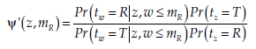 The probability of being in the phase t (trough or recovery), given individual attributes z, is estimated using a logit model by pooling the data with real hourly wages lower (higher) than mR.