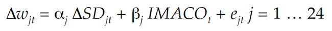 For each cell, a measure of supply and demand (SDjt) was calculated, defined as the share of the total matched workforce in cell j. The ols are used to estimate the shift in the mean cell wage, correlated with changes in supply and demand of labor, and imaco, which is used as a cyclical indicator: