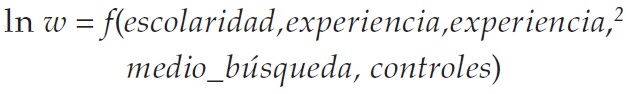 Para esta investigación se utilizó un modelo de determinación salarial tipo Mincer (1974), basado en la función de ingresos del capital humano como se muestra a continuación, en la cual, se incorporó el mecanismo de búsqueda de empleo como variable independiente: