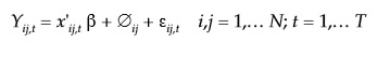 (1)Donde β denota el vector de parámetros de interés, y xij,t representa un vector de variables explicativas de dimensión K,y εij,t representa el término de error.