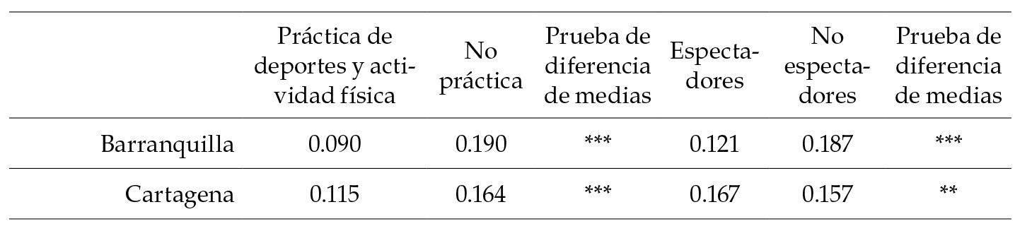 El estudio indaga, por primera vez para Colombia, sobre los vínculos entre participación en actividades deportivas y culturales. Según los resultados, la vida cultural representa un vehículo que incentiva la participación en deportes, en particular, para los espectadores. Tratando de entender este fenómeno, se evidencia que, al usar cohortes para capturar los efectos fijos, la variable que favorece este vínculo es la participación comunitaria (capital social), beneficiando de manera particular a la asistencia, pero no a la realización de actividad física.
