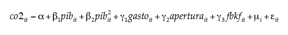 Para la cuantificación de la relación existente entre las emisiones de co2 y el nivel de actividad de los países, se formula el siguiente modelo lineal donde se incluye dentro del componente aleatorio un componente de heterogeneidad inobservable propio de cada uno de los países.