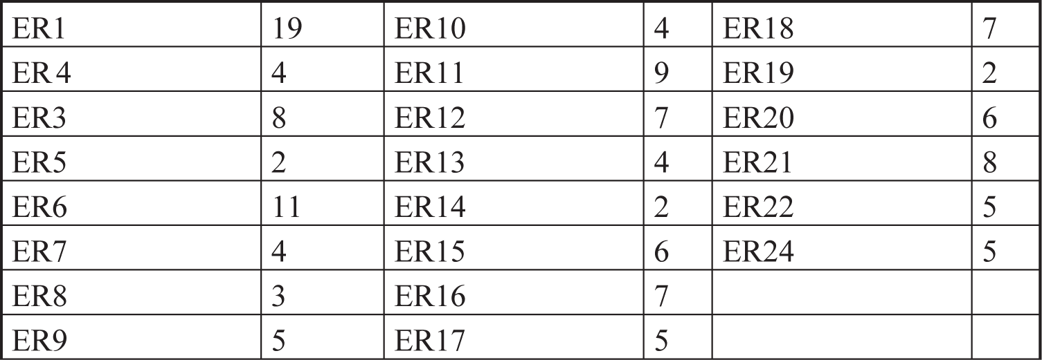 La tabla 6 muestra la intermediación de todos los productores encuestados. Se puede observar que los productores con mejores grados de intermediación, relacionados con los actores principales y con mayores incidencias e importancia en la red, son los referidos con los identificadores ER1, ER5 y ER10, y pueden también servir como enlace para una mejor integración de la red de comercialización. Los productores con menores grados de intermediación en la red son los identificados como: ER14 y ER19.