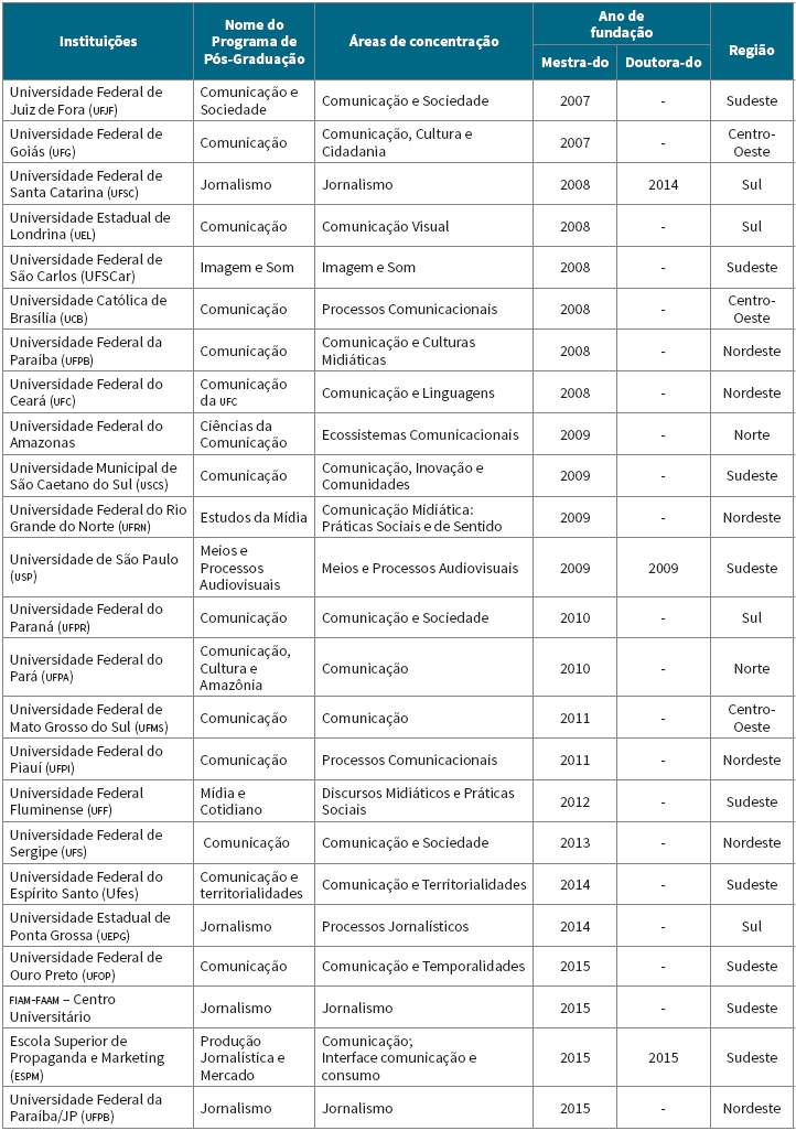 3.6. Os programas de pós-graduação em Comunicação na atualidade