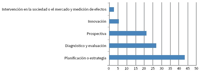 Las empresas cuidan sobremanera su imagen (marca), ya que es más duradera y resistente que los productos o servicios que ofrecen. Al consultar por los objetivos dominantes de la actividad investigadora (figura 2), casi la mitad de los que responden a esta pregunta reconocen que las principales motivaciones que conducen los temas de sus indagaciones tienen que ver más bien con la planificación (43,2 %) que con la evaluación (27 %).