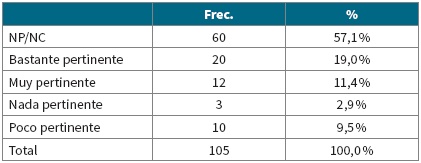 En comparación con otras asociaciones como IAMCR (International Association for Media and Communication Research), ALAIC (Asociación Latinoamericana de los investigadores de la Comunicación), ECREA (European Communication Research and Education Association), e ICA (International Communication Association) tiene muchas menos secciones temáticas en su estructura, no obstante, al preguntar a los investigadores por una valoración sobre la forma en que se organiza temáticamente la investigación, 1 de cada 3 encuestados (30,4 %) considera que dicha distribución temática es bastante o muy pertinente (tabla 7).