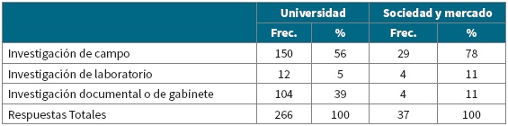 Por otro lado, en los estudios sociales y de mercado en comunicación resulta ser la investigación de campo la que impera (78 %), siendo el resto de marcos de la investigación prácticamente inexistentes, lo cual se relaciona con el abrumador uso en este último tipo de investigación de la técnica de encuesta que requiere el uso constante del alquiler o gestión de redes de campo o de paneles para administrar los cuestionarios, ya sea de forma coyuntural o longitudinal.
