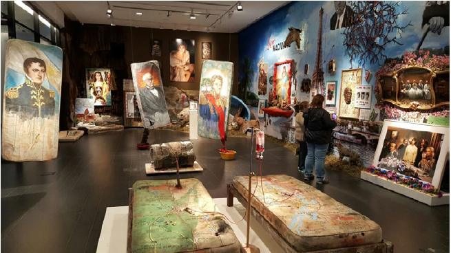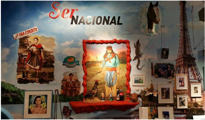 “Ser Nacional” se construyó en torno al tópico Identidad como una instalación y work in progress que ocupó toda una sala en el sexto piso del cck, orientada a revisitar y reversionar los estereotipos sociales de la argentinidad (figura 1). El tema es recurrente en la obra de López y guarda relación con las producciones de su serie más reconocida a nivel internacional denominada “Pop Latino”, construida en la década de 1990, y en especial con la serie “Subrealismo Criollo” que surge en los años 2000 (Barrios, 2016).