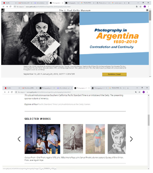 En cuanto a la web institucional del Getty Museum, por medio de la cual se difunde la exposición “Photography in Argentina, 1850-2010: Contradiction and Continuity”, resulta relevante considerar —a los fines de este trabajo— cuestiones relativas a su configuración y estructura comunicacional online, ya que nos permiten reflexionar sobre el estatuto de la imagen fotográfica y su condición digital en el contexto de mediatización del arte contemporáneo.