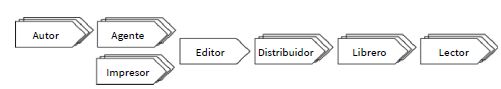 En relación con las industrias culturales y nuestro objeto de estudio, a este esquema habría que sumarle la cadena de valor del sector editorial, ya que la actividad económica de la industria del libro se sustenta en la interacción entre los diferentes actores que la configuran: autores, agentes literarios, editores, distribuidores, libreros y lectores (figura 3). Unos actores que, a su vez, forman parte del sistema mediático-publicitario.