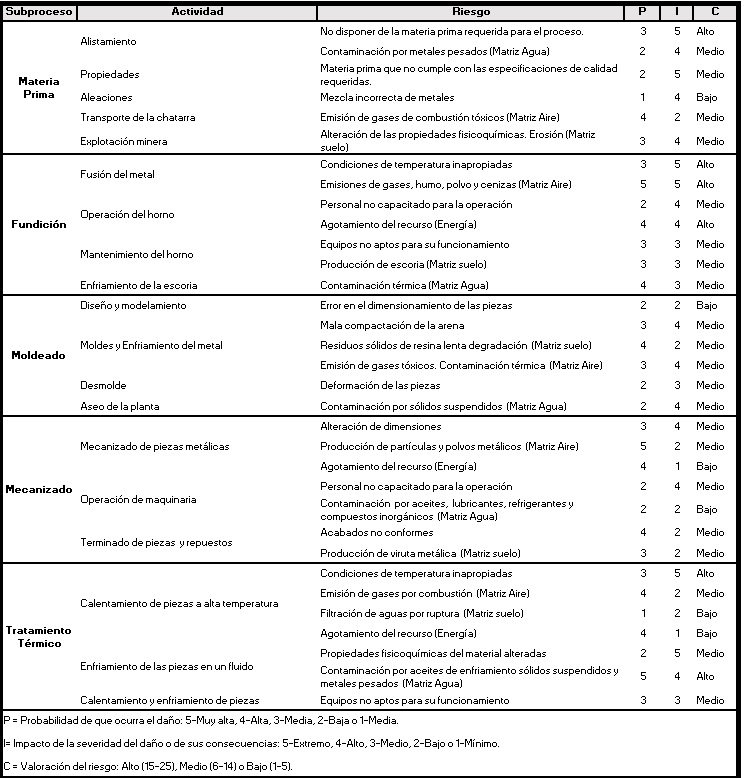 Una de las principales herramientas que se utiliza para la identificación de riesgos es la matriz de riesgos, la cual permite de forma objetiva priorizar y valorar cualitativa o cuantitativamente los riesgos relevantes para el SIG. En la Tabla 2 se detallan los riesgos de proceso identificados y valorados en Producción. Para el posterior análisis de los riesgos identificados se sugiere emplear el diagrama de causa –efecto considerando los factores de las 6 emes: máquina, mano de obra, materiales, medio ambiente, método de trabajo y medida; dependiendo del contexto organizacional. Una vez que han sido identificados y analizados los riesgos, la probabilidad de ocurrencia, las posibles causas y las posibles consecuencias, se establecen las acciones para abordar dichos riesgos y se determinan los controles necesarios, iniciando por los puntos críticos.