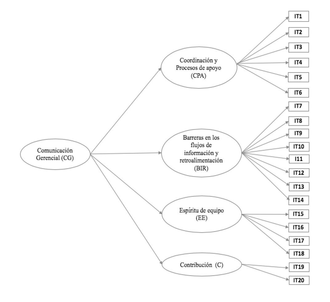 Una vez desarrollado el análisis teórico y estadístico, se concluye que son 3 los factores que influyen en la comunicación gerencial, es decir, que sostienen correlaciones positivas. El primero, las barreras en los procesos de Información y la retroalimentación (F1), se basa en la interacción del jefe-empleado, es decir, la comunicación vertical descendente del área de trabajo. También analiza si el jefe directo se toma el tiempo de explicar cómo se está realizando el trabajo y sugerir alternativas para mejorar de manera preventiva, para que, a su vez, se refleje en el desempeño. El segundo, la contribución (F2), consiste en desarrollar estrategias que permitan el involucramiento y la sensación de logro de objetivos y que también permitan la cooperación para trabajar con otras personas, de entenderlas y apoyarlas. El último factor por considerar es el espíritu de equipo (F3), que estriba en generar estrategias para fortalecer el entusiasmo para lograr objetivos y metas con actitud positiva en la empresa.