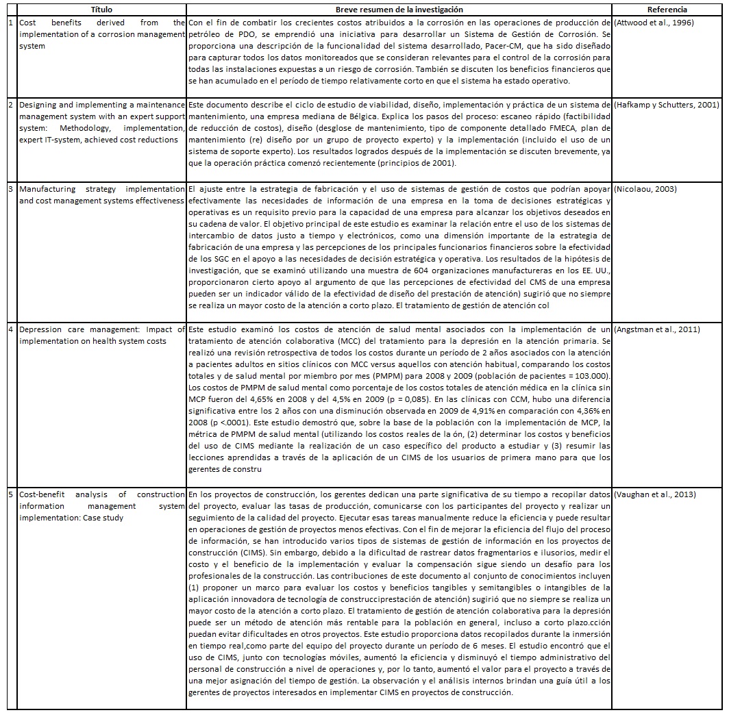 Como ha quedado demostrado en la información mostrada con anterioridad, las investigaciones y contribuciones científicas en esta área del conocimiento cuentan con gran aceptación por parte de la comunidad científica internacional, por este motivo, la Tabla 1 identifica las publicaciones más citadas y discutidas por la comunidad científica en la temática abordada por esta investigación. La Tabla 1 presenta: el título, el resumen y la correspondiente referencia bibliográfica de cada uno de los trabajos considerados. Es importante destacar que tanto los títulos como las abreviaturas que se muestran en la Tabla 1 se encuentran en su idioma original. Este hecho permitirá una mejor comprensión y entendimiento a los lectores que pretendan estudiar cualquiera de estos trabajos contenidos en la mencionada tabla.
