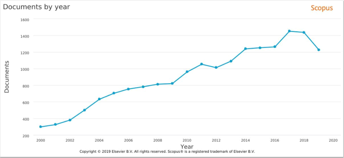 Las investigaciones y contribuciones científicas en el área de la efectividad del sistema de gestión de costo como una estrategia de óptimo empresarial han mostrado un notable incremento en su cuantía en las últimas décadas. Este hecho se debe al creciente interés por parte de la comunidad científica en este tipo de práctica investigativa, para enfrentar las cada vez más demandantes y complejas decisiones en el proceso adecuado de la gestión de costos de una empresa que pretende ser competitiva en el mundo de hoy. La Figura 1 da fe de la evolución de las investigaciones por año en estas dos últimas décadas.