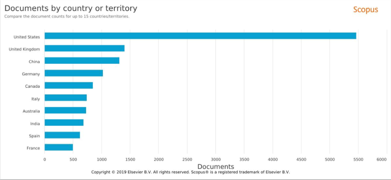 Las potencias del eje económico global consideran las investigaciones en sistema de gestión de costo como un óptimo empresarial; una práctica necesaria y oportuna en el entorno empresarial actual. Esta afirmación se sustenta en lo mostrado en la Figura 3. Los países como Estados Unidos de América, Reino Unido, China y Alemania son todos potencias económicas, financieras y empresariales. Estas naciones, a su vez, lideran las investigaciones en la temática tratada en esta contribución científica.
