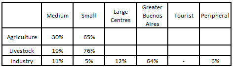 The selection of the context to which the case studies belong is based on the fact that the agri-food market has had a particularly remarkable and sustained growth in the region, being the district of Tandil one of the main engines of this performance (Lódola et al., 2013). Within the Province of Buenos Aires, the district of Tandil is configured as Medium Interior1, and Table 1 shows the performance of this category in terms of agriculture, livestock and industry for the year 2008: