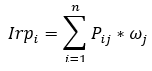 Seguidamente se calculan los valores promedio de los impactos de cada proceso () sobre los tres criterios definidos y los pesos () de los criterios (). Luego se determina el índice de prioridad o relevancia del proceso () a través de la ecuación 1: