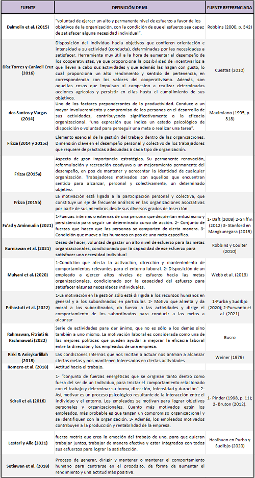 Otro aporte relevante es la identificación de factores que inciden en la motivación de los empleados de organizaciones cooperativas, entre ellos se encuentran el clima organizacional (Dalmolin et al., 2015), la estimulación moral (Díaz Torres y Canivell Cruz, 2016), el liderazgo (Kurniawan et al., 2021; Mulyani et al., 2020), las competencias del trabajador (Kurniawan et al., 2021) y la compensación (Mulyani et al., 2020).