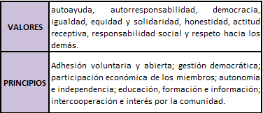 El modelo cooperativo, basado en la autogestión y la solidaridad, formalmente reconocido desde mediados del SXIX, presenta como una de sus mayores particularidades a la gestión colectiva, referida a la propiedad colectiva de los medios de producción y a la participación democrática de sus miembros, donde el centro es la persona y no el capital aportado (Singer, 2013). Una cooperativa es una asociación voluntaria de personas que define satisfacer sus necesidades de forma conjunta, administrando los recursos de esa asociación y siendo colectivamente responsables de su gestión (Dávila et al., 2005), bajo la guía de siete principios orientadores definidos, acordados y revisados periódicamente a nivel mundial por la Alianza Cooperativa Internacional (ACI, www.ica.coop), que son acompañados y sustentados en un conjunto de valores, según se muestran en la Tabla 1.