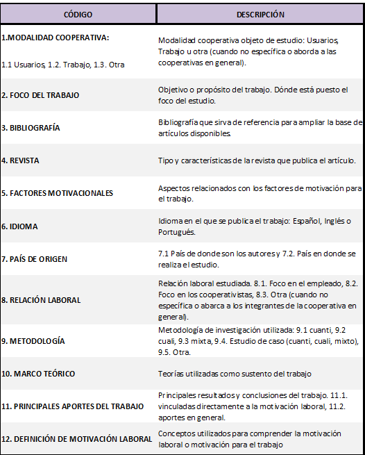 Varios artículos fueron excluidos porque hacían foco en el análisis de otras categorías como clima organizacional, en donde la motivación laboral era un aspecto tangencial del estudio, o analizaban la motivación para emprender en un modelo cooperativo, sustentados en teoría del emprendedurismo, así como en otros casos se hacía referencia al aprendizaje cooperativo o trabajo colaborativo.
