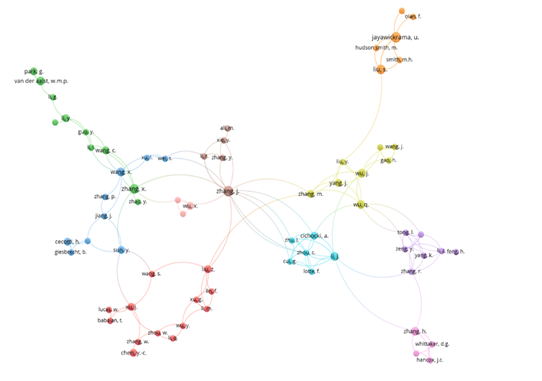 En la Figura 5, los autores que más destacan en colaboración con sus colegas son Junsong Zhang, Xiaocui Zhang y Changle Zhou.
