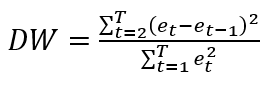 In this sense, the model does not contain unit roots and the analysis of the residuals through the Durbin-Watson Criterion allows for the analysis of their independence, as shown in Illustration 4 (b) (Altamirano, 2021). The Durbin-Watson criterion is used to determine the independence of the residuals (Talero Sarmiento et al., 2019):