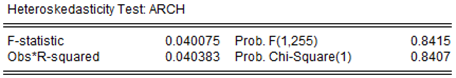 The probability p-values in Illustration 7 (a), exceed the condition of 0.05, therefore, there is independence of the residuals. In Illustration 7 (b), the p-values similarly exceed 0.05, which certifies the stability of the model, and especially when it is complemented with the Heteroscedasticity Test, which produced the values shown in Illustration 8, These values exceed the 0.05 threshold, as shown below: