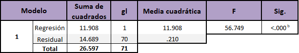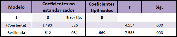 b) Variables predictoras: (Constante), Resiliencia.