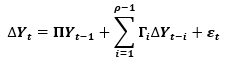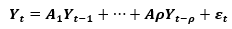 [1]donde Yt es un vector de k variables integradas de orden 1, y εt es un vector de innovaciones. Asimismo, el modelo VAR puede reescribirse como sigue: