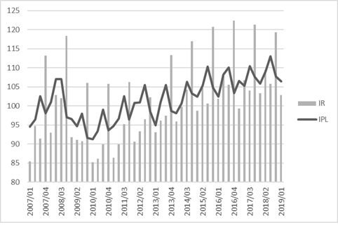 Al analizar la trayectoria de la productividad laboral y las remuneraciones en el sector manufacturero hidalguense, se observa que la productividad del trabajo se sitúa por encima de las remuneraciones, excepto durante los últimos trimestres de cada año entre 2017 y 2019. Esta dinámica se explica por la vigencia de los contratos y su renovación, donde tiene lugar el aumento salarial negociado anualmente, pero que se diluye a lo largo del año debido a los efectos inflacionarios (véase Figura 3).