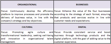 With this new vision of the organization, it began to be understood through four domains: business domain, digital domain, cultural domain, and organizational domain (see Table 2).
