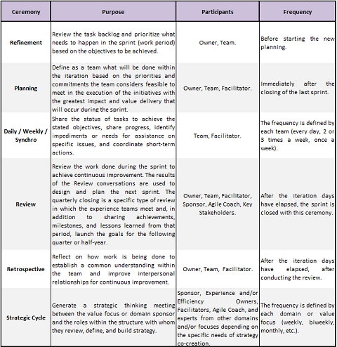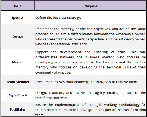 Those in sponsor roles state that the new work process is fundamentally based on an agile methodology that ensures all teams in the organization follow a common way of working, agreeing on results to achieve shared objectives. They also state that this methodology, in turn, shifts from working in isolation to solving problems by integrating different people and teams: