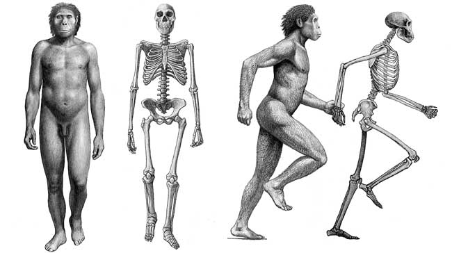 Reconstruction of the skeleton of the Dmanisi hominid, according to Mauricio Antón. A climate crisis about 1.8 million years ago caused forests to decline and drylands to expand in Africa. Likely, some populations of Homo habilis tried to follow the receding forests until they discovered an area still inhabited by sabertooths, where they could act as passive scavengers: the southern Caucasus.