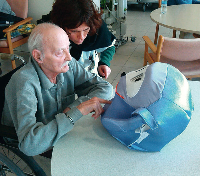 Little by little, so-called social robots are entering our every day environment, assisting elderly or disabled people, as guides at festivals and in museums, or even as babysitters andteaching assistants, among other tasks. In this picture, an Eldertoy test session with elderly people, focused on improving the psychosocial, affective, and cognitive abilities of its users.