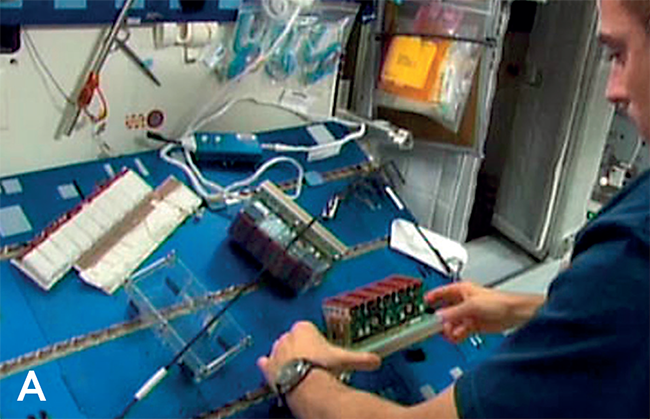 This event was an outstanding outcome of the project Vegetable Production System («Veggie»), a plant growth facility that had been capable of producing a small crop of a salad-type plant to provide the crew with a safe source of fresh food of good quality in terms of taste and nutrition. In addition, the culture served as a relaxing activity, very different from the routine procedures for the maintenance of the Station, and for their own physiological wellbeing. Veggie provides lighting and nutrient delivery, but utilizes the cabin environment for temperature control and gas exchange (Figure 1B).