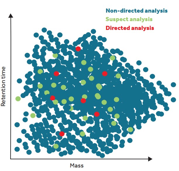 On the other hand, purely non-directed analyses do not use any such databases and so their computational requirements are very demanding because they have to process the millions of substances that might be present in each sample whilst simultaneously characterising and differentiating which ones are synthetic or natural, dangerous or harmless, and endogenous or exogenous. These techniques are still being developed and so, for the moment, suspect analysis is still the most scientifically accepted technique when applied in studies using candidate lists with thousands or tens of thousands of compounds.