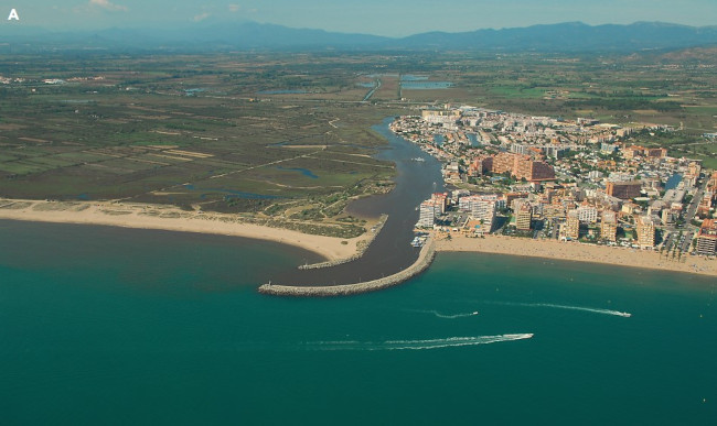 A) The Empuriabrava urbanisation project (Castelló d’Empúries, Girona, Spain), built on the seafront in a wetland area. Coastal wetlands have been virtually wiped out from the Mediterranean coastal ecosystem.