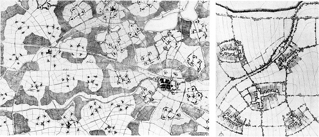 Christaller’s central place theory was ideal for combining the aforementioned Nazi preference for classical and traditional architecture with a territorial plan based on rational and scientific assumptions. The minimal aggregation unit in this plan was, as we have already stated, the soldier-farmer and his family. He would live on a farm alongside other farms of similar size, all placed around public buildings (for example, the Nazi party headquarters or Hitler Youth headquarters, etc.) which would form the smallest urban unit: the Dorf or “village”.