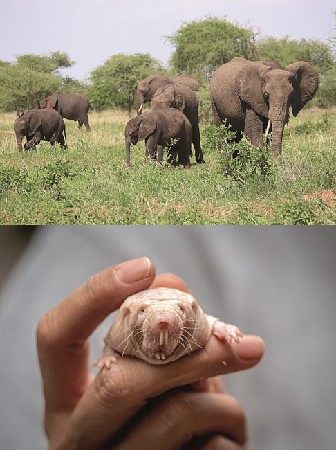Cancer data from humans support this expectation: being 10 cm taller increases one’s cancer risk by about 10% (Nunney, 2018). This is a modest change in body size, if we consider the full extent of body size variation within animals. In fact, extrapolating from this, one could argue humans, having 1,000 times the size and 30 times the lifespan of mice, should routinely succumb to cancer (Peto, 1977) and elephants and whales should be so cancer-prone that they should not even reach reproductive age. But… they do, an observation known as «Peto’s Paradox». To be precise, the paradox refers to a lack of increase of cancer incidence with lifespan and body size across species (Abegglen et al., 2015). This lack of correlation has far-reaching implications: large and long-lived animals must have evolved ways to combat an a priori higher cancer risk.