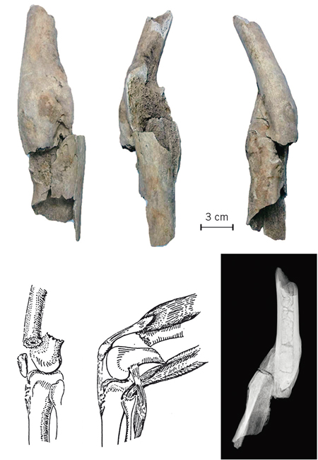 Source: Grupo Paleolab®The pictures at the top show an antemortem supracondylar fracture of the right femur in a male adult of the Imperial period with a subsequent displacement due to muscle traction of the quadriceps and calves (bottom left). The bottom right radiological image shows a callus fracture with shortening of the extremity.