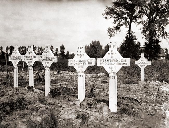 In the early years of World War I, there were specific units of soldiers who buried the fallen. Later in the conflict, the Imperial War Graves Commission was created to recover the bodies of the dead, bury them in the new war cemeteries established after 1918, and mark their graves. The Commonwealth countries, as well as others such as France and Germany, created many of these cemeteries in Europe. In the picture, a temporary cemetery created in 1916 for Canadian soldiers killed in combat.