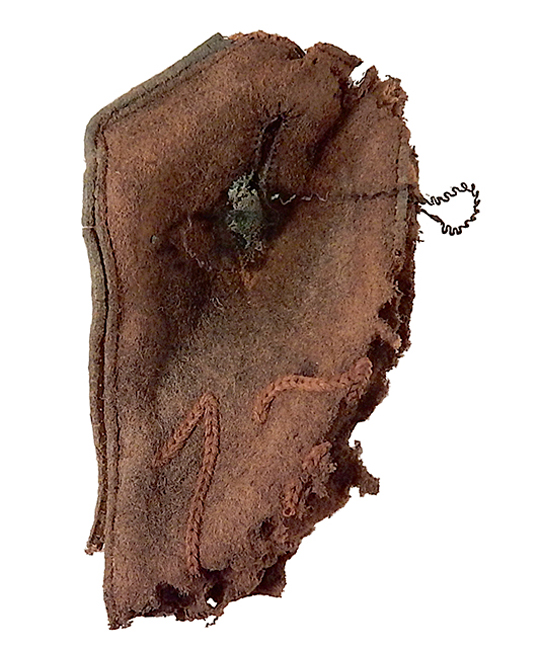 Shoulder strap of a German soldier’s uniform recovered from a 1914 trench excavated in Wijtaschate (Belgium). Personal effects found next to human remains may be key to their identification. According to this piece, the soldier would have belonged to the 17th infantry regiment of the Royal Bavarian Reserve.