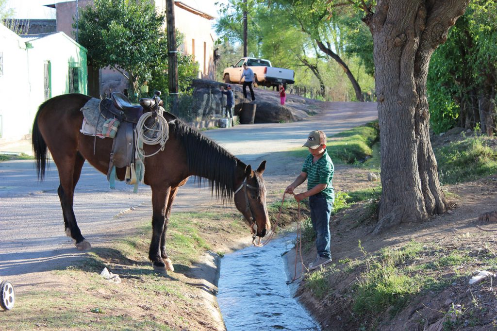 A boy allowing his horse to drink in an irrigation ditch in Cucurpe, Sonora, the host community of a Canadian-owned underground gold and silver mine. The presence of mining endangers the present and future water security of communities and ecosystems because it has the potential to affect both the quantity and quality of water available to local users.