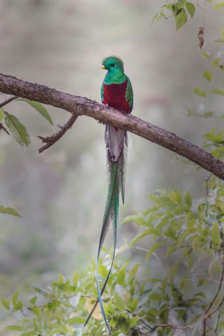 A male resplendent quetzal (Pharomachrus mocinno). The males of this species stand out for their eye-catching colours, ornaments which they use to compete for the attention of female mates.
