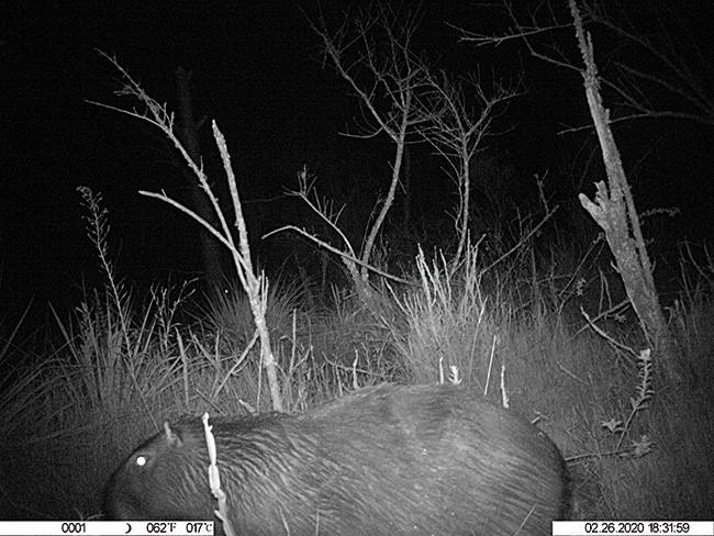 Photo-trapping allows for the identification and even differentiation of individuals of the same species, which is particularly useful in large mammal conservation projects. Images taken with an automatic camera showing a brown brocket (Mazama gouazoubira, top picture) and a capybara (Hydrochoerus hydrochaeris, bottom picture) at night in Uruguay.
