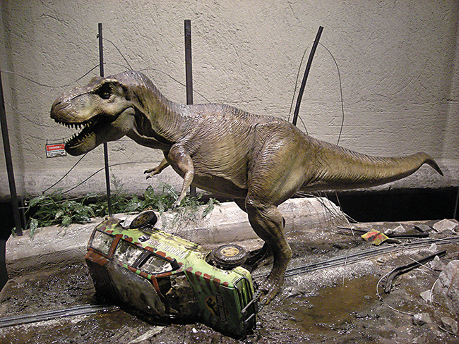 Diorama depicting a scene from Jurassic Park, on display at the Italian National Museum of Cinema (Turin). The film saga encouraged a generation of palaeontologists, facilitated the creation of museums and research groups, and promoted the funding of palaeontological campaigns.