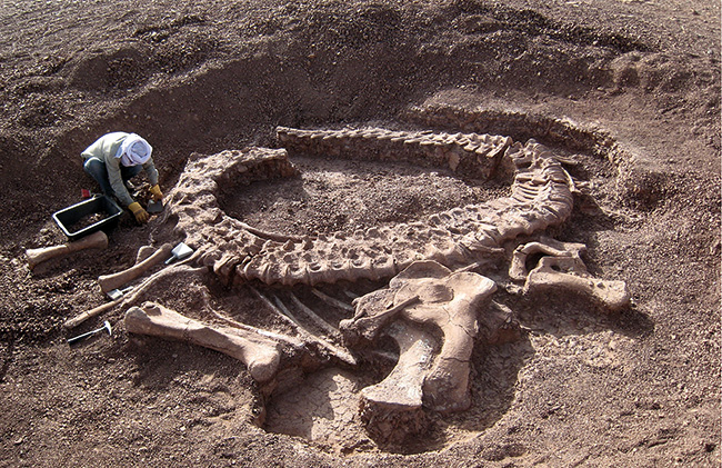 Excavation of the sauropod Spinophorosaurus nigerensis near Agadez (Niger) in 2007 by the PalDes (Palaeontology and Development) project. There have been several interpretations of what the behaviour of these impressive animals in their environment might have been.