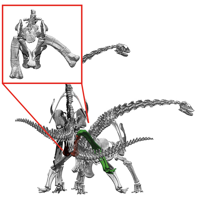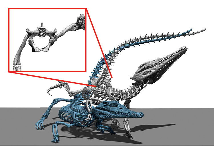 Studies of Spinophorosaurus nigerensis, an exceptionally complete and well-preserved early sauropod from the Jurassic period of Niger (from almost 170 million years ago), have brought the two lines of evidence together and shown that, far from being incompatible, they are perfectly complementary. Spinophorosaurus is known from three articulated specimens (Remes et al., 2009): a spectacular, almost complete, articulated skeleton of an 11-metre-long subadult; partial remains of a 13-metre-long adult; and the neck and first back vertebrae of a 3-metre-long juvenile.
